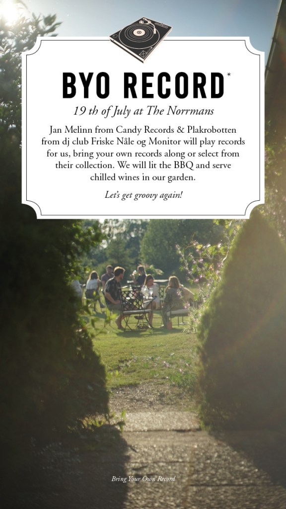 For efter at have startet et magnificient samarbejde med de plakkede mennesker fra Norrmans og brugt en åndssvag god aften sammen med Tullemutten, Stegen og ikke mindst Boef1 i juni månd, så gentager vi successen igen den 19/7-20 ude hos Norrmans Bed & Breakfast. Endnu engang er der fuldt booket, og det med god grund. Maden er fantastisk og stedet rummer alt hvad en moderne robot har brug for – Mad, Naturvin og tid gallore til at hygge sig med sine venner og andre godtfolk. Desværre vil min musiske muse – Boef1 ikke være der, men jeg vil vende plader med Jan Melinn fra Candy Records.